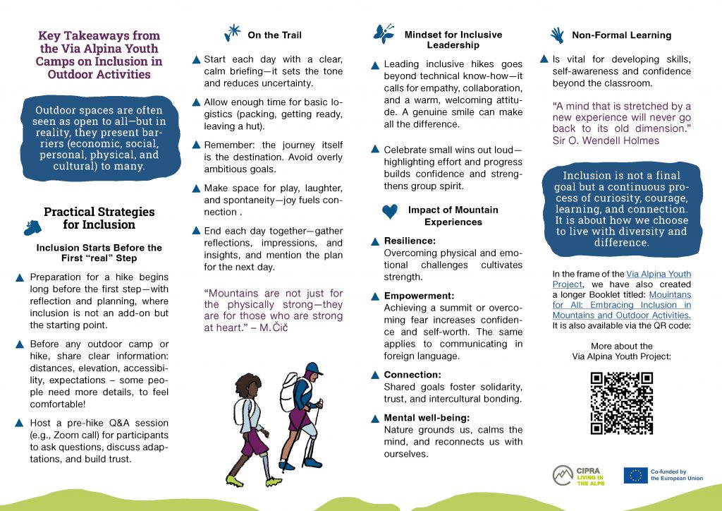 I had the great pleasure to work together with Maja Kogovšek, CIPRA International in creating a publication for Inclusive youth camp in the Dolomites Project.